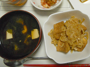 定番の「厚揚げと切干大根の煮物」と王道の「わかめと豆腐のみそ汁」を