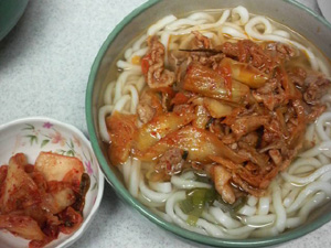 うどんの上に乗せたんですが、うどんを食べ終わって、そのキムチの染み出た