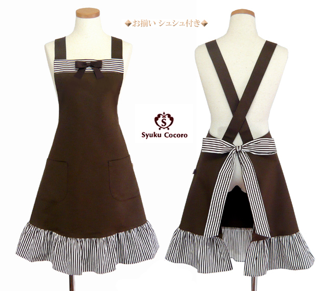 ロマンチックブラウンAラインエプロンドレス(シュシュ付き)